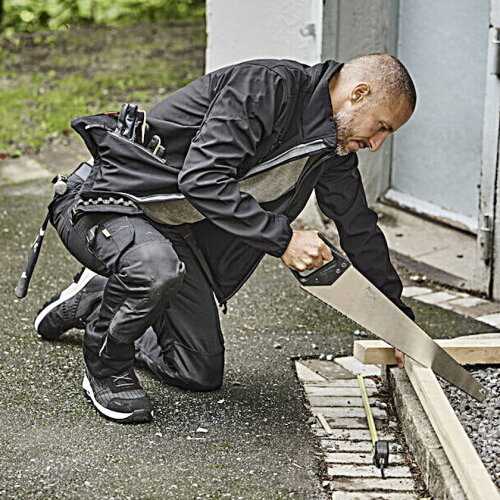 Een werkbroek van onderhoudsvriendelijk polyester/katoen dat zijn kleur en vorm behoudt. De broek heeft stretchpanelen aan de achterzijde voor extra flexibiliteit, ruime voorzakken, holsterzakken met extra vakken en een extra ritssluiting, achterzakken met klep, een beenzak met extra vak en een klep met klittenbandsluiting en een duimstokzak met ruimte voor een mes. De kniestukzakken zijn verstevigd en de kniestukken kunnen op twee hoogtes geplaatst worden. Broek kan bij de zoom met 5 cm worden verlengd. Gecertificeerd volgens EN 14404:2004+A1:2010 Type 2 Level 0 samen met Jobman kneepads 9941.