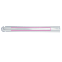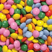 Transparant reageerbuisje met ca. 13 g mini choco's, pepermuntjes of groene erwtjes